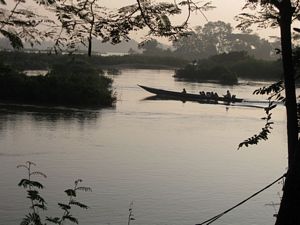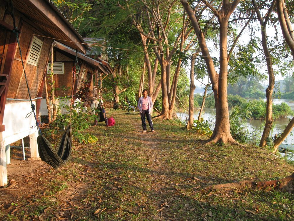 Mercredi 11 décembre 2013. Paksé - Dondet ( les 4000 îles ). Départ vers le sud à neuf heures, dans un grand car moins rapide, mais bien plus confortable que ces affreux minibus où l’on a la désagréable sensation d’enfermement. La sortie de Paksé se fait dans une poussière teintant de rouge toutes les maisons avoisinantes, car on améliore la route qui deviendra une large avenue à quatre voies. Dans le car, il n’y a que des touristes, les « locaux » voyageant encore en songtaew nettement moins cher. Premier arrêt : le chauffeur annonce le village de Champasak où se trouvent les ruines réputées du temple khmer Vat Phu. Certains touristes descendent, se croyant arrivés à Don Khône ou Dondet, les îles du sud. Cela me fait pitié ! Non seulement ces pauvres individus ne savent pas ce qu’est Champasak, mais en plus il est certain qu’ils n’ont même pas pris le temps de regarder une carte, sans quoi ils sauraient que sur les cent-cinquante kilomètres prévus, nous n’en avons fait que trente ! Leur conception du voyage, c’est de trouver un endroit moins cher que chez eux, et de venir fumer leur « pétard » en toute tranquillité. Ils ne trouvent aucun intérêt à préparer leur voyage. Ils s’échangent des « tuyaux », ou ils les trouvent sur Internet, et ils ne savent même pas où ils sont. C’est là la nouvelle conception du voyage... Ils n’ont aucun respect pour les mœurs des habitants et ils amènent leurs préjugés et leurs jugements sectaires collés à la semelle de leurs tongs. Heureusement, dès que les conditions de voyage deviennent un peu difficiles, on ne trouve plus ces pécores. La route vers le sud est peu fréquentée. La campagne est aride et les buissons alternent avec de petits lopins de terre où l’on cultive des piments et un peu de riz. Arrivés à Nakassang, on nous fait monter dans une grande barque qui prend un peu l’eau, mais pas beaucoup ! Nous sommes presque en surnombre, avec des bagages qui s’entassent à l’avant. Pas une bouée, pas un gilet de sauvetage... en cas de naufrage, ceux qui ne savent pas nager s’accrochent à ceux qui savent. Et puis d’ailleurs, pourquoi y aurait-il un problème puisqu’il n’y en a jamais eu ? Nous, les Occidentaux, nous vivons toujours dans la crainte du pire. Ici chacun a confiance en son destin, et si la fatalité vient s’en mêler, c’est que le destin l’a voulu ! Nous retrouvons l’île de Dondet inchangée, les petits bungalows au bord de l’eau toujours les mêmes, les trous dans le plafond du restaurant de Bounhom ont un peu changé de place, c’est tout ! Nous passons l’après-midi à regarder couler l’eau jaune du Mékong. On entend le bourdonnement sourd des chutes de Khon Phapheng dans le lointain. Ici le temps coule tout doucement, et je crois comprendre le sens du terme « couler des jours heureux ».