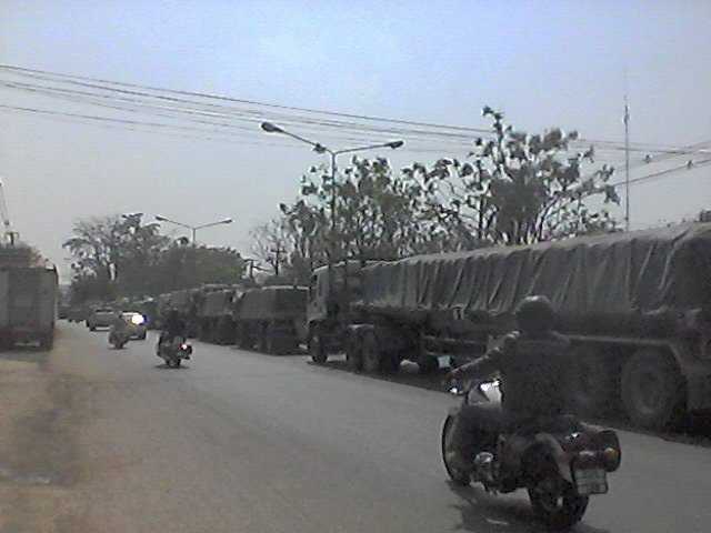 Jour de repos. Il fait trop chaud ! Alors je vais jusqu'à la frontière du Cambodge, juste pour ne pas passer la journée dans ma chambre. C'est un véritable chaos, au poste-frontière. Il y a des camions partout, des cars, une voie ferrée qui ne mène nulle part, des esclaves cambodgiens tirant ou poussant des charrettes débordant d'énormes ballots, des démarcheurs proposant leur « aide » pour faire le visa, des vendeurs de sorbets, de grillades de poulet... Je me sens tout petit dans cette confusion générale ! Je suis bien content de ne rien avoir à faire ici, ça me permet de fuir !